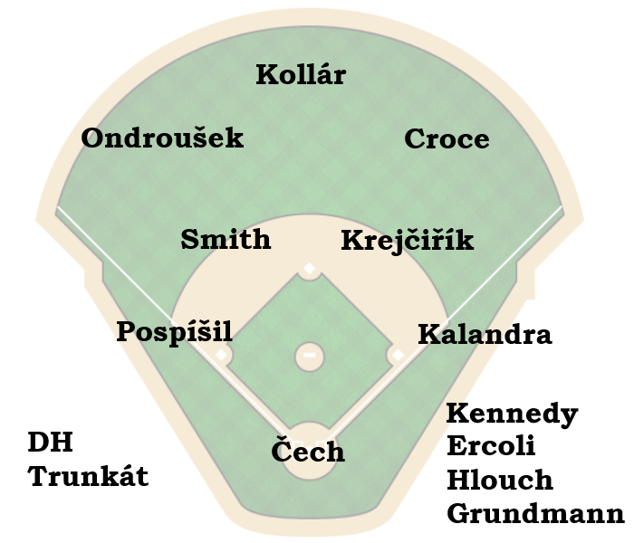 Kádr Hrochů Brno je letos nabitý a téměř na každou pozici je minimálně jeden další hráč na vystřídání. Trojice Čech/Kalandra/Trunkát se může vzájemně zastupovat jak na catcherovi, tak i na první metě, do infieldu jsou pak připraveni například Vítězslav Nový nebo Adam Jacques. Kellen Croce by pak měl kromě pravého pole zřejmě nastupovat také jako closer v závěrech vyrovnaných utkání.