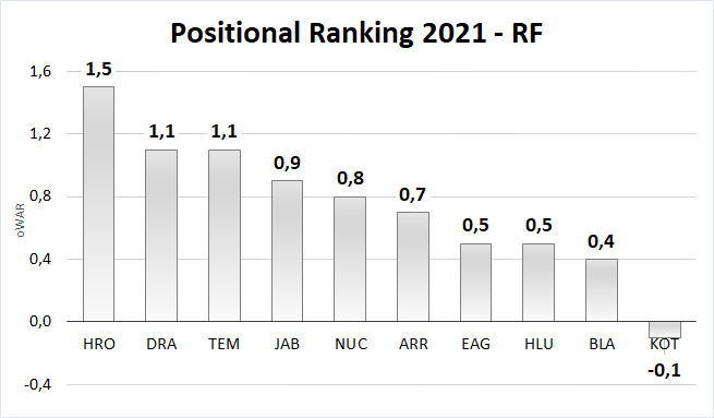 *statistiky hráčů jsou za celou základní část 2021, pouze WAR je rozdělena na části podle zápasů na dané pozici.