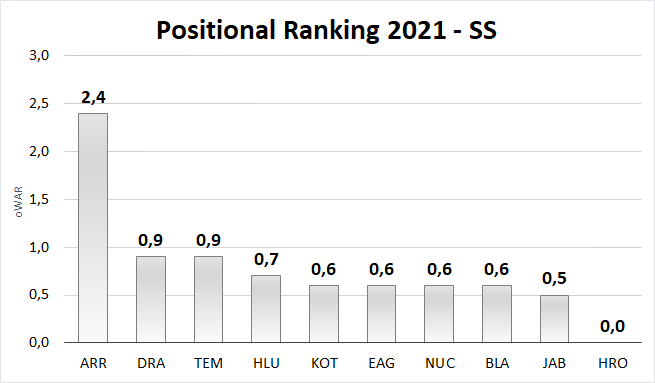 Nejde tedy o klasické porovnání kvality hráčů v pravém smyslu, jelikož na obranu není v těchto přehledech kladen takový důraz, jaký by si zasloužila. Navíc, v české lize se mohou importovaní hráči ze zámoří velmi rychle střídat, takže když například Arrows Ostrava měli jednoho z nejlepších ofenzivních shortstopů Tylera Smithe, nemusí to v nové sezoně vůbec nic znamenat. I tak jde určitě o zajímavý pohled na přednosti a slabiny v sestavách extraligových týmů během základní části sezony 2021.
