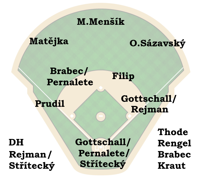 Technika má na výběr zejména mezi catchery, kde může střídat hned trojici hráčů. Uvidíme, na jaké pozici se nakonec usadí import z Venezuely Adrian Pernalete, který může hrát i na spojce. V infieldu by měli dostávat hodně příležitostí také mladí hráči na hostování z Draků Brno Adam Prudil a Ondřej Filip, outfield očekávám víceméně ve stejné podobě, jako v loňské sezoně, tedy s Matějem Menšíkem ve středním zadním poli.